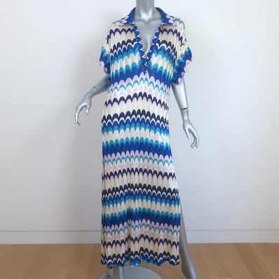 Alexis Maxi Dress Lucchini Blue/Cream Silky Knit Size Medium Cover-Up ...