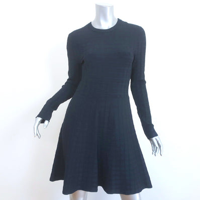 A.L.C. Mini Dress Schultz Navy Checked Knit Size Medium Long Sleeve Fi...