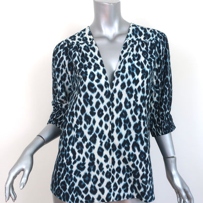 A.L.C. Puff Sleeve Top Elton Blue Leopard Print Size 10 V-Neck Blouse