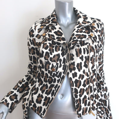 Blumarine Leopard Print Motorcycle Jacket Cream/Brown Stretch Cotton S...