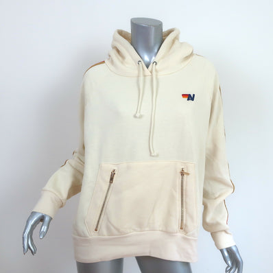 Aviator Nation Velvet Stripe Hoodie Sweatshirt Cream Size Medium