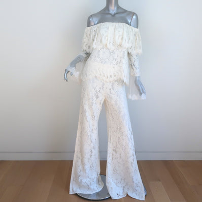 Alexis Off the Shoulder Top & Wide Leg Pants Set Cream Lace Size Mediu...
