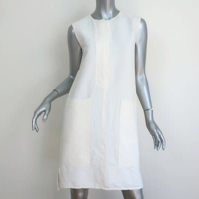 Celine Sleeveless Shift Dress Cream Stretch Linen Size 36