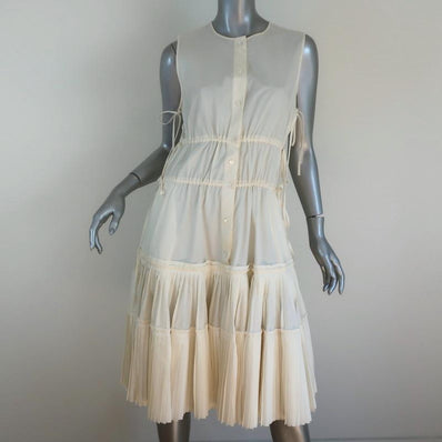 Brock Collection Dress Danielle Ivory Cotton-Silk Size 4 Sleeveless Bu...