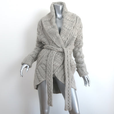 Agnona Cashmere Circle Cardigan Light Gray Cable Knit Size 40 Belted S...