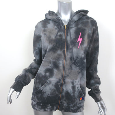 Aviator Nation Zip-Up Bolt Hoodie Sweatshirt Gray Tie Dye Size Large