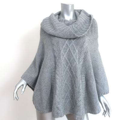 Autumn Cashmere Cowl Neck Poncho Sweater Gray Cashmere-Blend Cable Kni...
