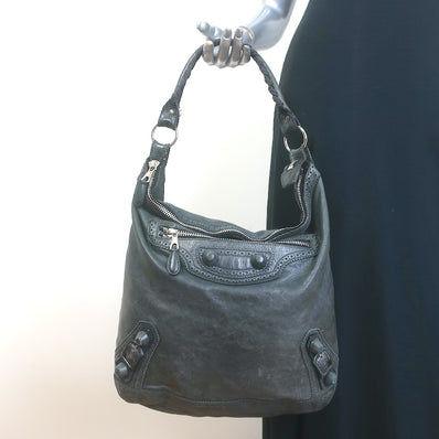 Balenciaga Giant Covered Brogues Day Hobo Charcoal Leather Large Shoul...