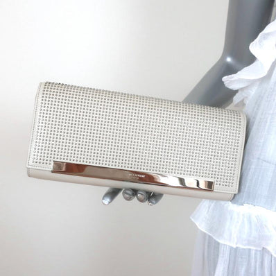 Saint Laurent Lutetia Clutch Off-White Studded Leather Flap Bag