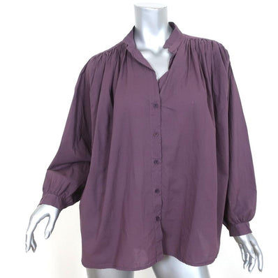 A Shirt Thing Blouse Flora Lawn Eggplant Cotton Size Medium Long Sleev...
