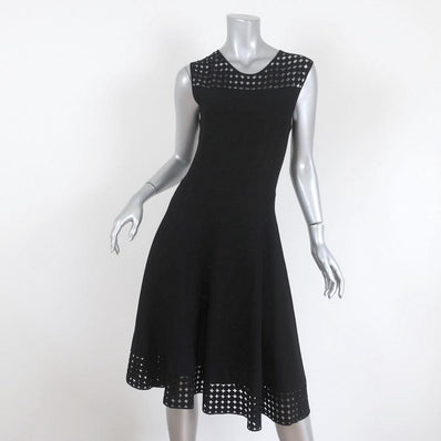 Akris Punto Dress Black Laser Cut Knit Size 8 Sleeveless Fit & Flare NEW