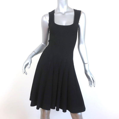 Alaia Fit & Flare Dress Black Stretch Knit Size 36 Sleeveless Scoop Ne...