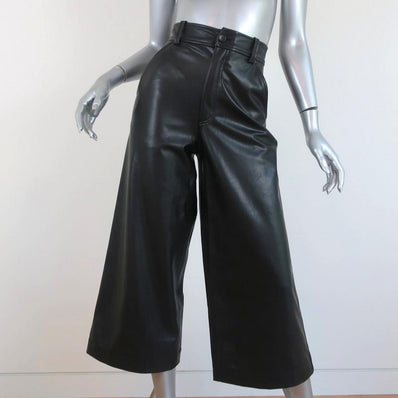 A.L.C. Wide Leg Cropped Pants Wiles Black Faux Leather Size 00 NEW