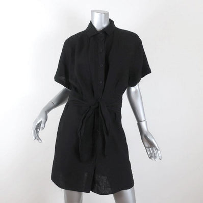 & Other Stories Mini Dress Black Linen Size 6 Tie-Front Shirtdress NEW