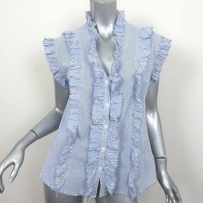 A Shirt Thing Ruffled Button Down Top Blue/White Striped Seersucker Si...