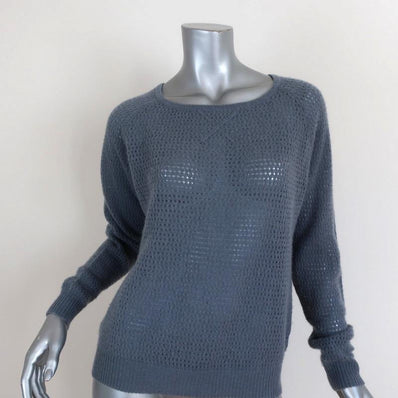 360 Cashmere Sweater Light Blue Open Knit Cashmere Pullover Size Medium