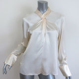 3.1 Phillip Lim Twist-Neck Blouse Ivory Silk Satin Size 6 Long Sleeve Top