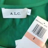 A.L.C. Asymmetric Gathered Mini Dress Jina Jade Stretch Linen Size 2 NEW