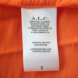 A.L.C. Delfina pleated one-shoulder cutout midi dress in vivid orange (size 2) delivers sculptural, modern elegance with a flattering asymmetrical neckline and a subtle waist cutout that elevates any occasion-ready look.