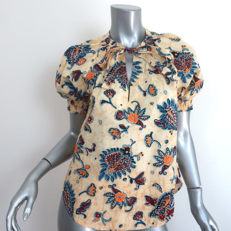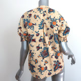 A.L.C. Puff Sleeve Top Ellis Yellow Floral Print Cotton Size 2 Tie-Neck Blouse