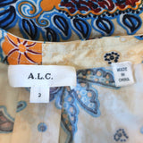 A.L.C. Franco Blouse Black Bandana Print Silk Size 10 Long Sleeve Butt...
