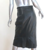 Akris Pleated Leather Pencil Skirt Black Size US 8