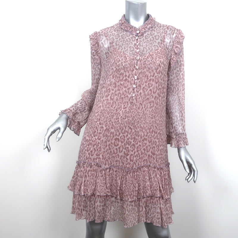 Alessia Zamattio Long Sleeve Dress Pink Leopard Print Ruffled Chiffon Size 42