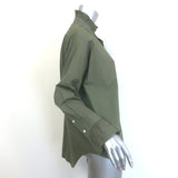Alex Mill Ruffled Button Down Shirt Army Green Size Medium Long Sleeve Top