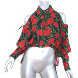 Alexander Wang Cold Shoulder Shirt Rose Print Silk Size Small Long Sleeve Top