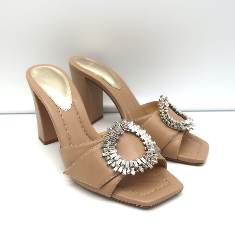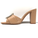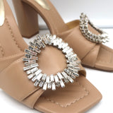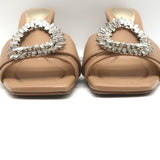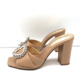 Alexandre Birman Crystal-Embellished High Heel Mules Nude Leather Size 37.5