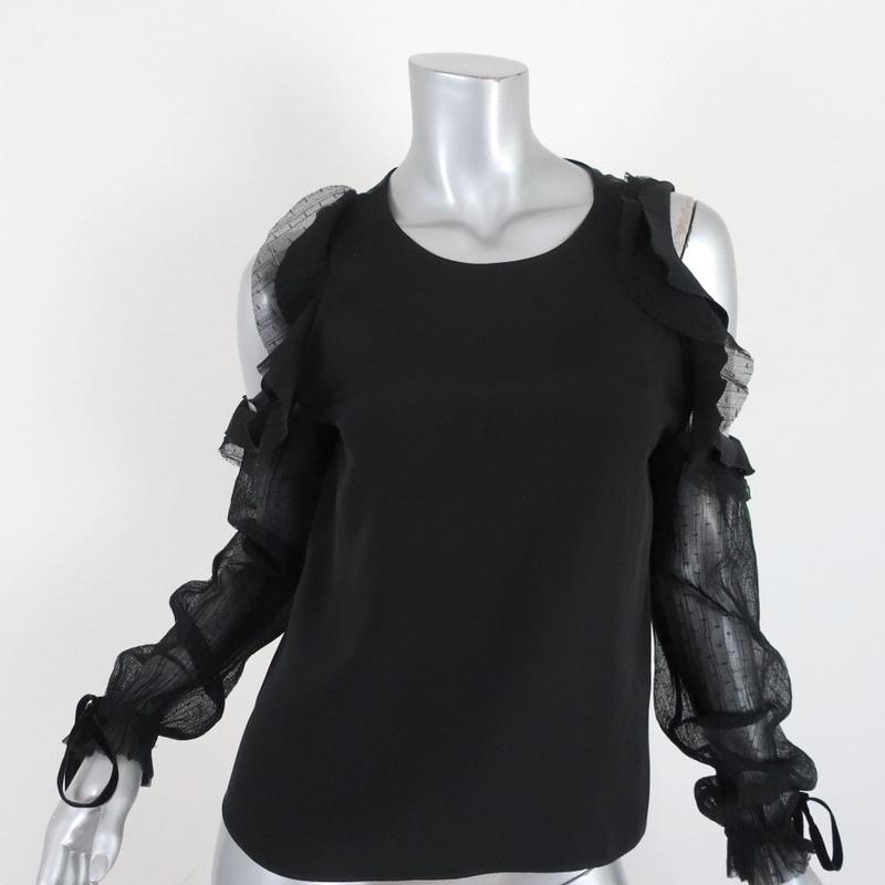 Alexis Cold Shoulder Top Fernand Black Ruffle-Trim Silk & Mesh Size Extra Small