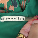 Alice + Olivia Coco Midi Dress Green Floral Print Fil Coupe Chiffon Size 2