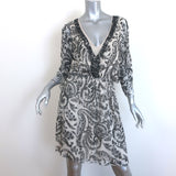 Alice + Olivia Jeanette Beaded Cold Shoulder Dress White Paisley Print Size 10