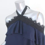 Alice + Olivia Off the Shoulder Halter Top Alyssa Navy Lace-Trim Size Medium