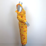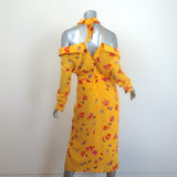 Altuzarra Cold Shoulder Midi Dress Yellow Floral Print Silk Crepe Size 38 Measurements