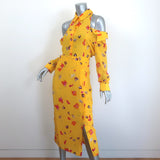 Altuzarra Cold Shoulder Midi Dress Yellow Floral Print Silk Crepe Size 38