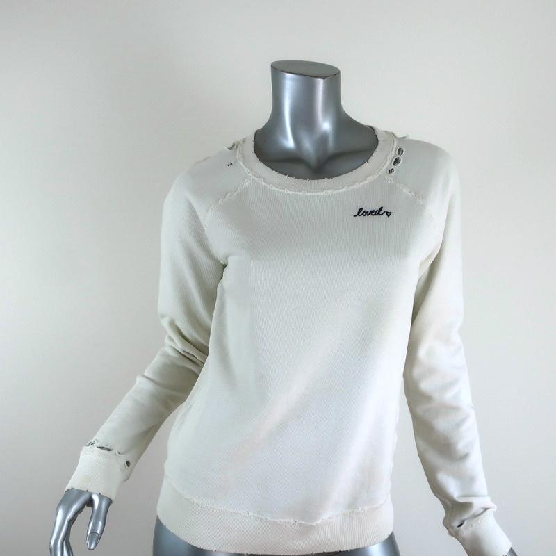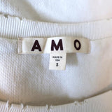 AMO Loved Sweatshirt White Distressed Cotton Size Small Crewneck Pullover