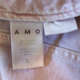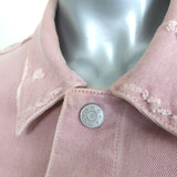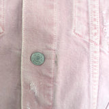 AMO Pop Destroyed Denim Jacket Blush Stretch Cotton Size Large