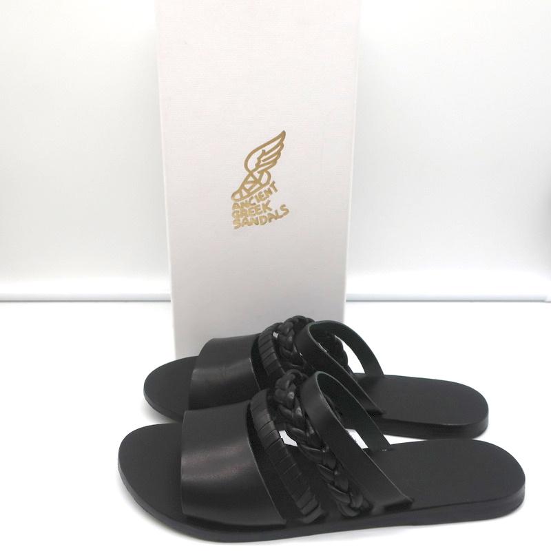 Ancient Greek Sandals Helene Slides Black Braided Leather Size 38