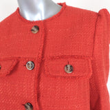 Ann Taylor Fringe Tweed Jacket Persimmon Size 2 Multi-Pocket Button Front