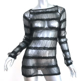 Anne Fontaine Long Sleeve Top Carolane Black Striped Tulle Size 40