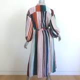 Apiece Apart Kimono Shirt Dress Multi Striped Linen-Silk Size 4 Long Sleeve Midi