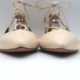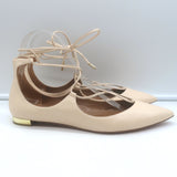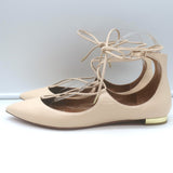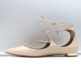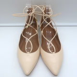 Aquazzura Christy Lace-Up Ballet Flats Ivory Leather Size 39.5 NEW