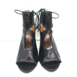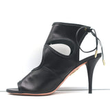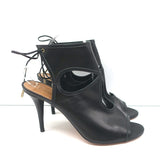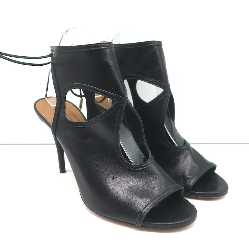 Aquazzura Sexy Thing Cutout Booties Black Leather Size 40 Open Toe Heels