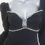 ASTR the Label Anabelle Crystal-Trimmed Puff Sleeve Top Black Crepe Size Small