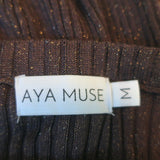 Aya Muse Pisa Maxi Skirt Dark Brown Metallic Ribbed Knit Size Medium