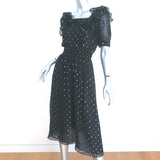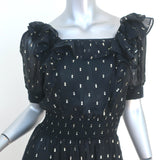 Ba&sh Midi Dress Romeo Black/Gold Metallic Fil Coupe Size 0 Short Sleeve NEW