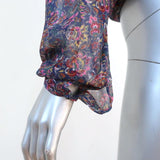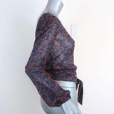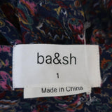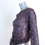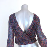 Ba&sh Open Back Blouse Danny Navy/Multi Floral Print Size 1 Long Sleeve Top