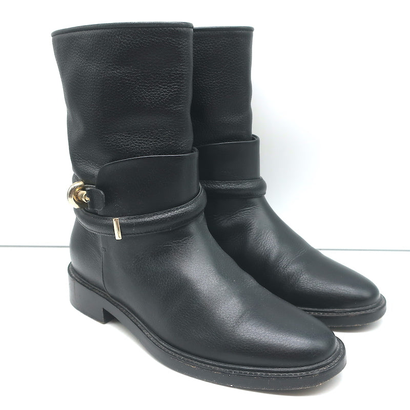 These pre-owned boots are crafted from smooth black leather with an ankle strap and classic biker details — a look Balenciaga is widely admired for by fashion editors and resale shoppers alike for its sculptural, street-forward appeal. The brand’s footwear reputation centers on bold design and high-quality construction, so you’re buying style with substance.