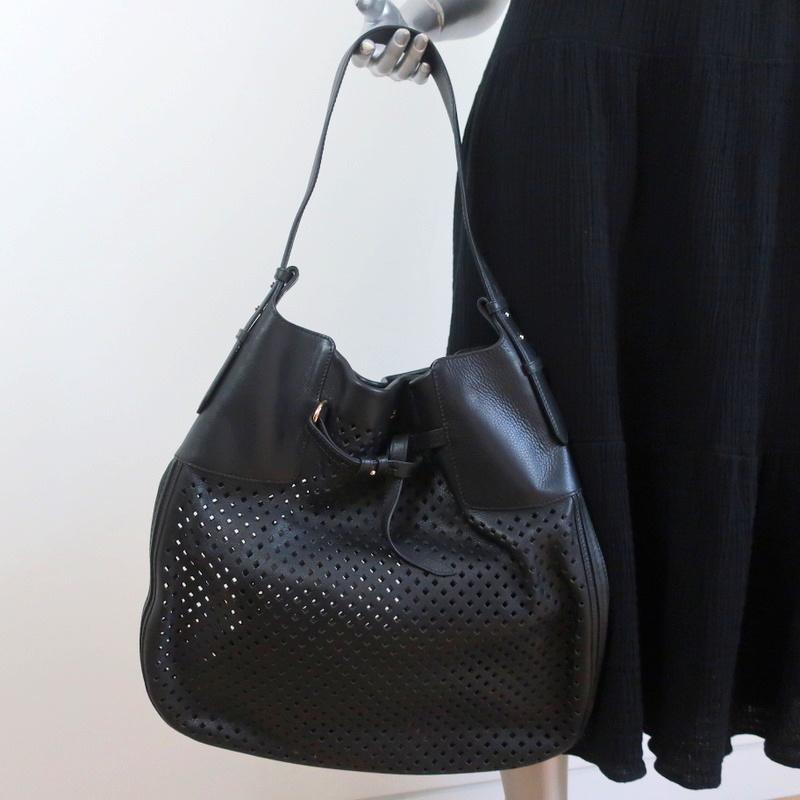 Bally Pamia Hobo Black Laser Cut Leather Extra Large Shoulder Bag NEW